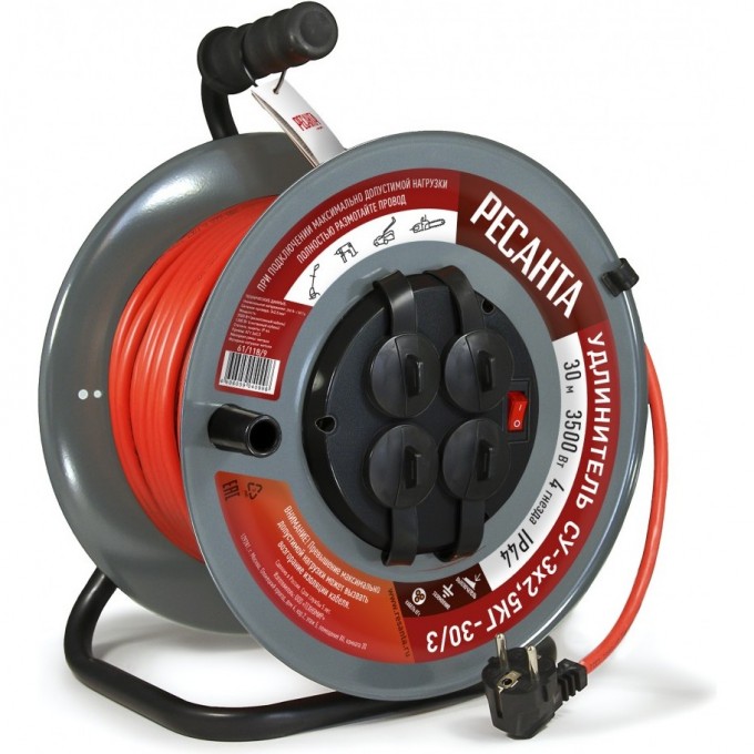 Удлинитель силовой на металлической катушке РЕСАНТА СУ-3х2,5КГ-30/3 61/118/9